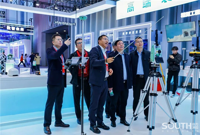 中国科学院、中国工程院院士,国家最高科学技术奖获得者李德仁(左三);中国工程院院士刘经南(左二)亲临南方展台